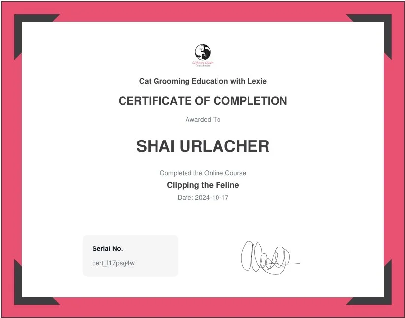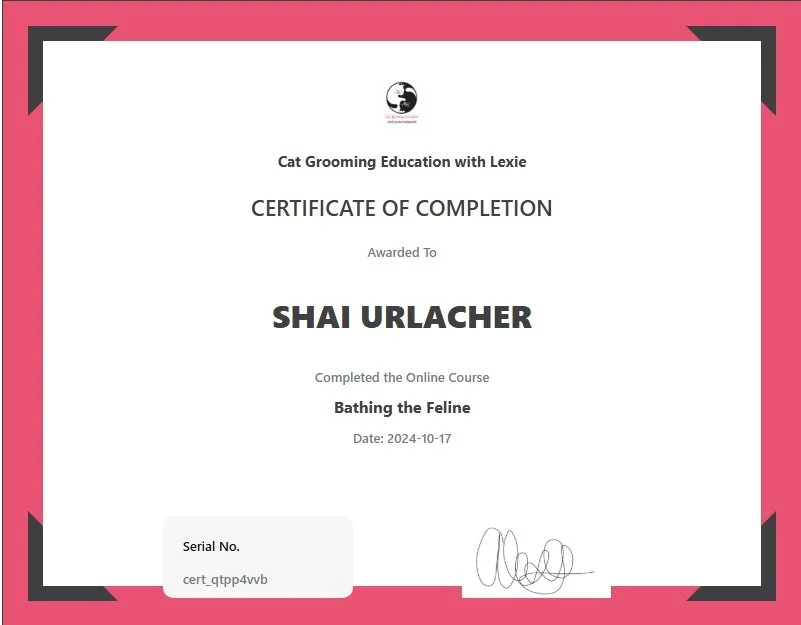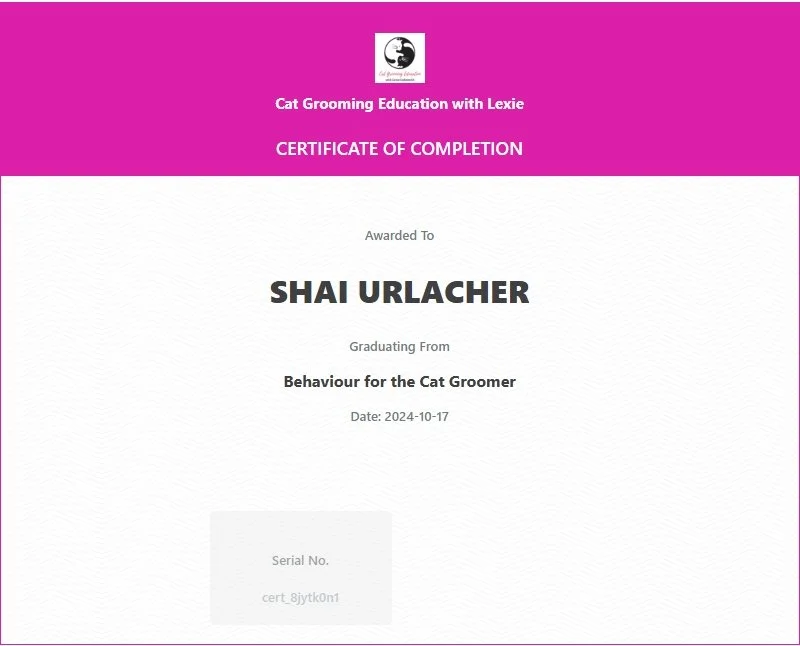 I am Pet CPR certified, working towards my certification in Cat grooming to become a master cat groomer as well as a certification in Rabbit Grooming so I can add that to the list of services I offer. I am always looking for more ways to learn about grooming and animals so I can always provide the best for my clients.